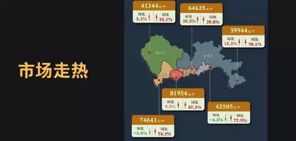 南山同比增幅是74%,福田是87%,鹽田是78%,寶安是55%,羅湖是40%,龍崗是78%。整個深圳的漲幅大概在50%左右,坦白說,這是我從業以來看到的最快的單個城市的漲幅。