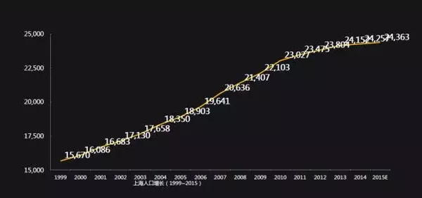我們還是以上海作為一個樣本。從1999年到2015年,這16年間上海整個人口增加了900萬,900萬人口放到任何一個世界上都是很大的城市,差不多每年流入將近60萬人口,非常巨量的人口流入。