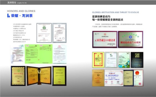云南龍潤茶業集團是一家集茶葉種植、加工、銷售、科研、茶文化教育和推廣為一體的高科技產業化集團。堅持“理論市場、產品市場、資本市場”同時運作的發展戰略,攜手云南農業大學聯合創辦龍潤普洱茶學院與云南普洱茶研究院,將茶葉的真實性、科學性、權威性建立起來。以“用制藥的經驗制茶”,借助云南、福建、浙江、湖南等中國核心產茶區的地理優勢和資源優勢,以不斷創新的模式和國際化的視野,以高素質的員工團隊為后盾,打造中國茶產業。龍潤茶秉承“用制藥的經驗制茶”,建立了“86道質量把關”等嚴格質量體系。