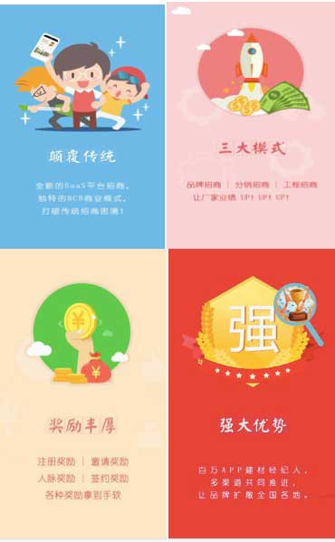 招商寶APP1.0版正式上線!品牌招商、總代招分銷、工程資源合作三大版塊全新上線。建材家居市場、裝飾公司、企業、總代理商、總代理商...您有資源,我們幫您實現價值!招商寶888萬上線紅包等您來拿!什么是招商寶APP?