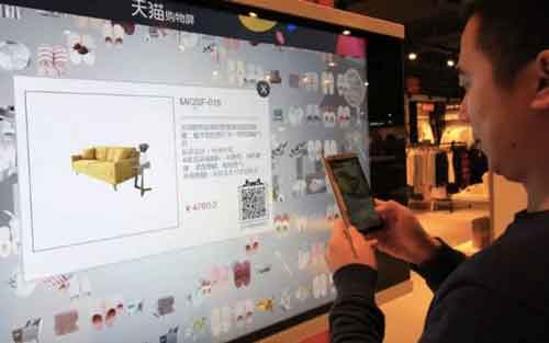 在這家全渠道智慧型門店里的電子屏上,不同的消費(fèi)者進(jìn)去,大屏顯示的商品都會有所不同。這家僅6平米的線下店展示的商品有限,對應(yīng)到線上卻是無限的商品。這是因?yàn)椋⒗锢镁€上線下的大數(shù)據(jù)進(jìn)行分析,根據(jù)這些消費(fèi)者的消費(fèi)習(xí)慣和購物訴求,即時展示最適合的商品,促進(jìn)業(yè)績銷售,提升運(yùn)營效率。