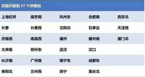 7月17日開始,鐵路部門在全國27個主要高鐵客運站推出互聯網訂餐服務。乘坐G、D字頭的動車組列車的乘客,可以通過12306網站、手機App等方式訂購高鐵快餐,也可以提前預定沿途供餐站供應的社會品牌餐食。