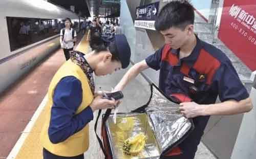 此前,武漢鐵路局官方微博稱,旅客訂餐成功后,鐵路站車服務人員會把餐食送到旅客指定的車廂和席位。