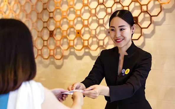 崗位設置突出表現在前廳上。前廳是賓館的門面,很多房間數在250間以下的中小型酒店,前廳分的崗位很多,有接待,有收銀,有問訊,有禮賓,客人進入大廳一看,工作人員比客人還多,顯得亂而無序,而且增加了酒店管理難度。其實,完全可以將總臺崗位進行合并,接待員會收銀,收銀員會登記,行李問訊均由總臺一體承擔,這樣便于人員安排也方便了顧客。
