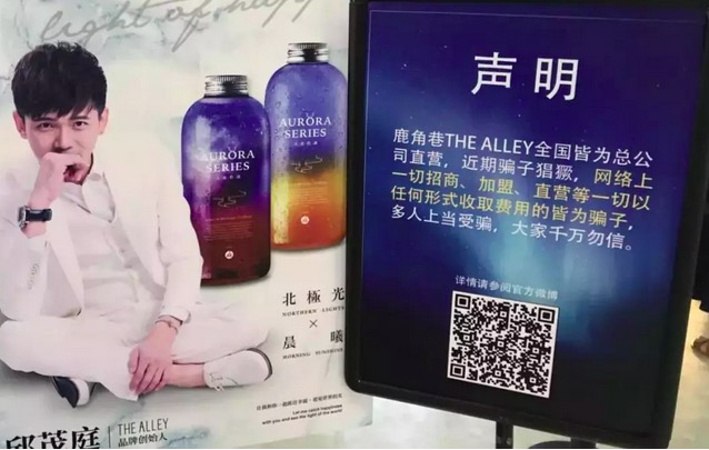 “鹿角巷THE ALLEY全國皆為總公司直營,近期騙子猖獗,網(wǎng)絡(luò)上一切招商、加盟、直營等一切以任何形式收取費(fèi)用的皆為騙子,多人上當(dāng)受騙,大家千萬勿信。”