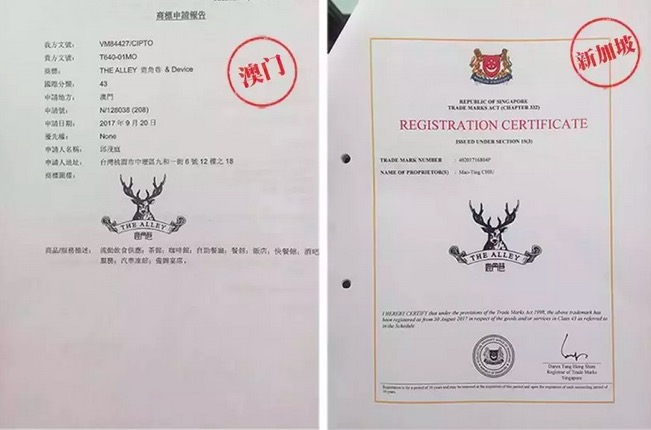 鹿角巷在澳門和新加坡的商標(biāo)注冊