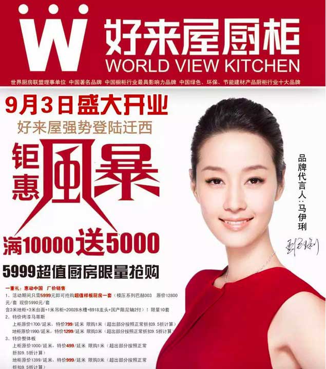 好來屋還提出了一句非常出位的口號:“攜手馬伊俐,少奮斗五年。”陳曉黎解釋稱:因為馬伊俐在中國人的心目中是一個好媳婦,櫥柜行業有一個馬伊俐做代言人。希望通過這個方式讓更多人知道櫥柜里面有一家好來屋。