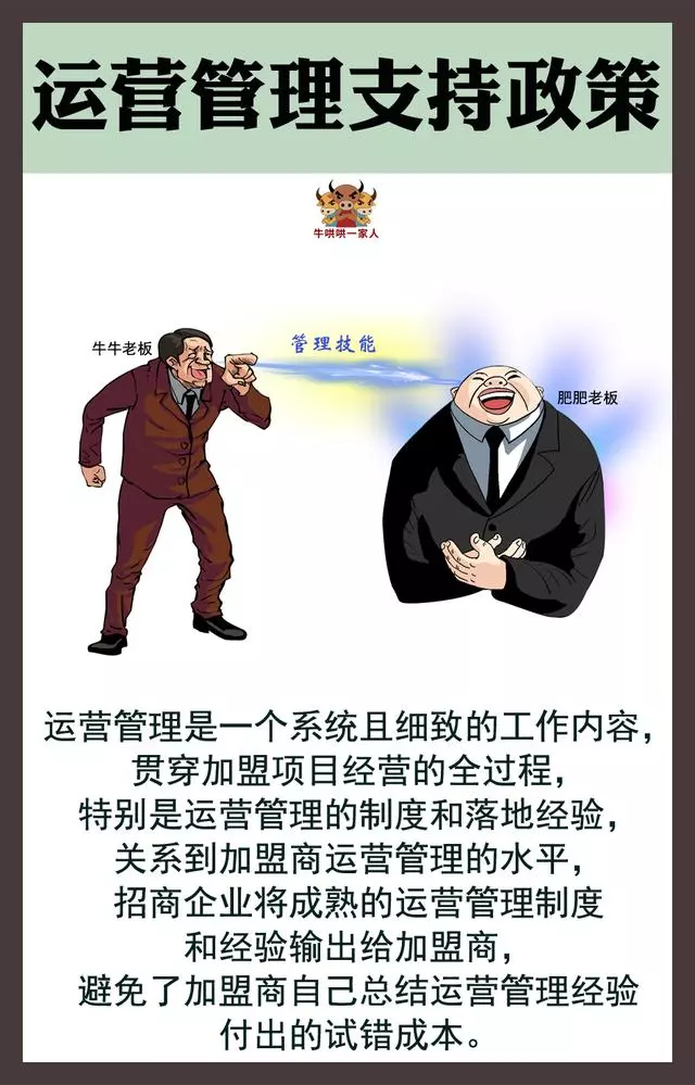 人才的支持也是運營管理支持政策的重要內容,加盟商一開始對加盟項目知之甚少,不懂如何運營管理,說到底是人才的缺失,如果招商企業能夠向加盟商輸出人才,幫助加盟商培訓員工、培育市場,免除加盟商的后顧之憂,將會極大的吸引更多的加盟商。