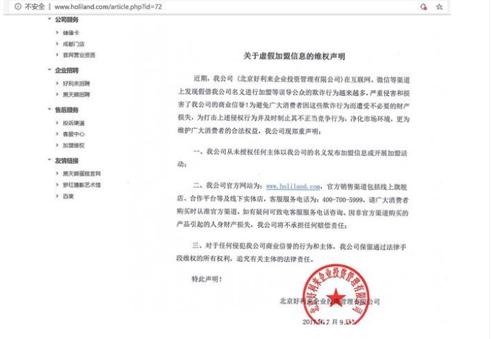但是好利來官網發出了相關聲明,并不開展加盟活動。