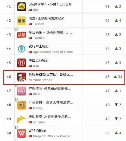 2017-09-05 09:10:09 肯德基APP一夜之間殺入排行榜前50名背后的秘密!