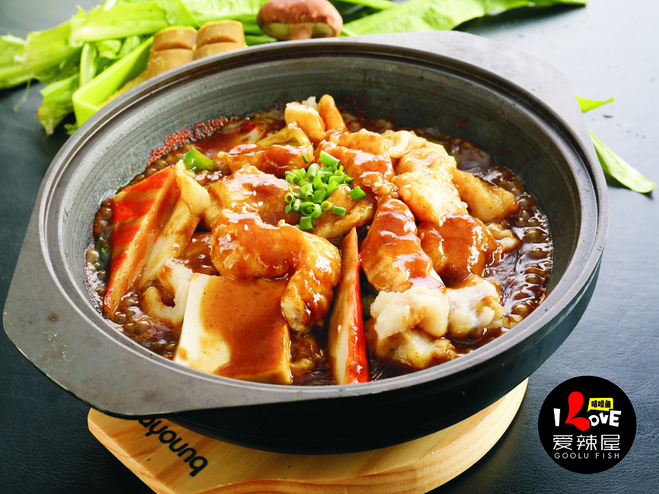 愛辣屋咕嚕魚是愛辣工社傾巨資研發的時尚魚品牌,它既不是麻辣燙,也不是石鍋魚,更不是麻辣香鍋,而是一種創新制作工藝,集合以上3種吃法的優點,運用10余種不同的辣椒加以改良,味道更好,風格鮮明!食材采用深海龍利魚,鮮美無骨,口感軟糯,入口即化,讓食客們吃一次就流連忘返。