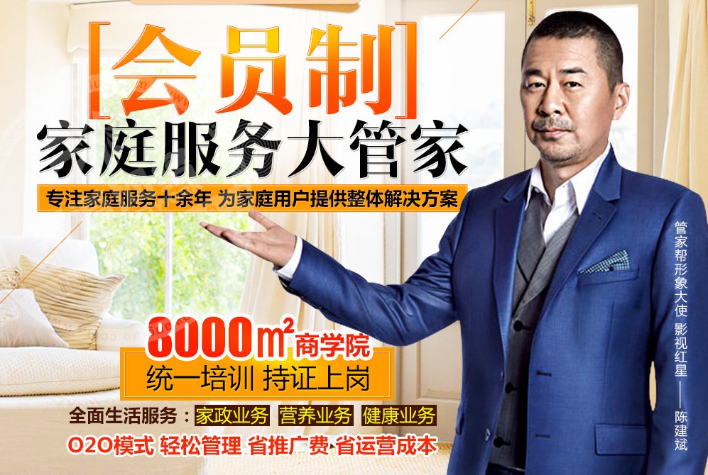 2017年第31屆北京國際連鎖加盟展覽會將于4月2-3日在北京全國農業展覽館盛大開幕,本屆連鎖加盟博覽會匯聚數十個行業,擬設展位300個,參展品牌逾200家,共計邀請專業投資創業觀眾約3萬人次。明星陳建斌代言“管家幫”作為本屆家政服務連鎖機構品牌參展,展位號:特八區36平米,期待您蒞臨考察! “管家幫”品牌隸屬于北京易盟天地信息技術股份有限公司,品牌創立于2006年,總部位于北京,并在上海、深圳、廣州、天津等近百個城市設有分支機構。“管家幫”是中國家庭服務O2O模式的首創者,通過“FMF”商業模式(FMF:產品和服務從工廠、基地直接供給到家庭),提供以“家政服務”為主,“有機食品、營養健康、綠色家居、安居咨詢”為輔的“一體四維度”產品服務整體解決方案“LNH”(LNH:家政、營養、健康)系統,為家庭客戶提供整體解決方案,實現“管家幫,幫您管好家”的服務承諾,做到“讓天下家庭后顧無憂”。
