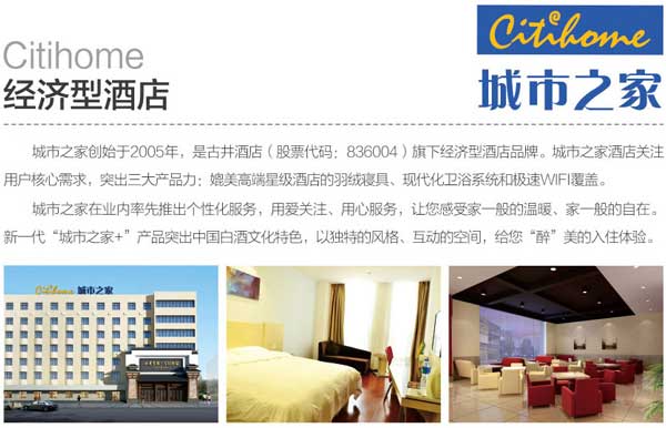 安徽古井酒店管理公司,創(chuàng)始于2000年,是中國領先的專業(yè)酒店管理公司之一,多次榮膺中國最具規(guī)模的飯店管理公司(集團)30強。公司重點以直營及加盟的模式發(fā)展“城市之家”、“君萊”這兩個住宿業(yè)連鎖品牌門店。