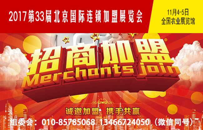 “2017第33屆北京國際連鎖加盟展覽會”,將于11月4日-5日在北京全國農業展覽館舉行。據介紹,本屆展會面積達1萬余平方米,將有來自國內外超過300個特許連鎖加盟品牌、理財投資機構參展,連鎖加盟經營范圍涉及中西式餐飲食品、首飾精品、美容保健、服裝服飾等數十個行業,其中不乏部分中國500強企業的亮相。