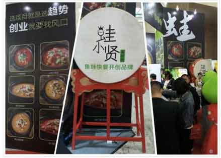 孵化蛙小賢香辣魚蛙快餐這個項目的時候,它的創始人,南開大學MBA范嘉敏先生說:“我們要讓所有的人都吃的起牛蛙,我們要讓所有的中小創業者都實現他們的餐飲夢”。是的,蛙小賢香辣魚蛙快餐,以快餐的形式進入大眾的視眼,它具有“免聘大廚,秘制醬料整店配送,2-3人輕松開店,操作極簡,翻臺率高等優勢”。當天展會憑借其項目本身的創新性、獨特性、稀缺性贏得了眾多創業者的青睞,當場簽約合作者絡繹不絕。