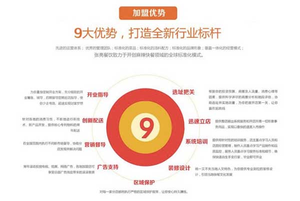 | 加盟詳情 | 張亮麻辣燙加盟 張亮餐飲公司續寫麻辣燙快餐歷史。哈爾濱市張亮餐飲有限公司,是一家集品牌管理、美食研發、原料供應、餐飲連鎖、特許經營于一體的的餐飲管理機構。張亮麻辣燙是張亮餐飲有限公司重點打造的餐飲連鎖項目之一。 張亮餐飲有限公司堅持操作標準化、供應流程化、連鎖規模化和管理科學化的發展理念,引進先進的快餐特許經營模式,公司現設有運營管理部、市場部、招商部、采購部、倉儲等部門,集培訓、配送、質檢、客服等于一身,已成為全國極具規模的餐飲管理機構。 張亮餐飲有限公司注重品牌創新和文化建設,堅信只有腳踏實地的幫助加盟商朋友成就致富夢想,堅定不移的為消費者送去健康營養的麻辣燙,為成為“中式快餐的領軍者”而不懈努力。 張亮麻辣燙發展歷程——張亮麻辣燙創建于2008年,堅持始終為百姓提供安全、放心的美食,弘揚中華飲食文化為企業經營宗旨,經過短短數年的發展,現已擁有千余家連鎖門店,創建了強勢的龍江餐飲品牌。張亮麻辣燙主要分布在黑龍江省、吉林省、遼寧省、河北省、山東省、內蒙古自治區、廣東省等,2013年市場版圖擴張到海南、廣西、新疆,并在北京、天津、吉林、遼寧、內蒙古、河北、山東等地設立分公司;2014年加盟店總數將達到1500家;2015年全國贏利店將超過2000家。
