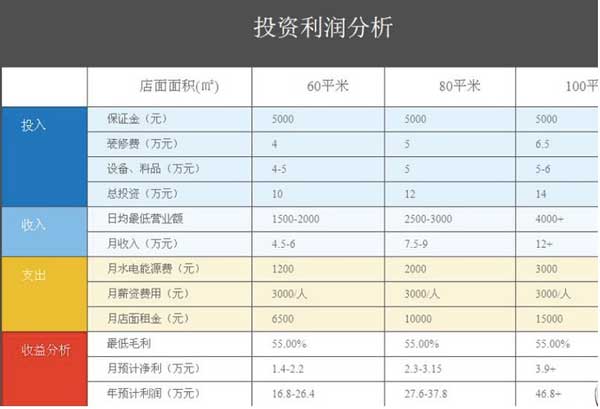 | 加盟費 | 1-10萬 | 保證金 | 萬元人民幣 | ||